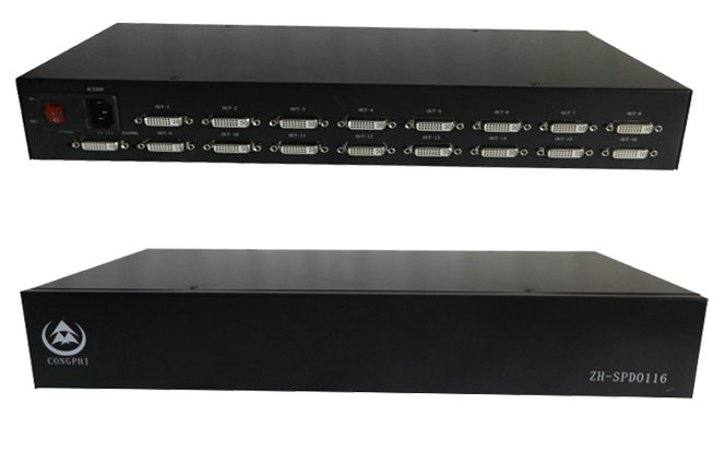 5、 ZH-SPD0116 工業(yè)型分配器輸入可支持標(biāo)準(zhǔn)DVI 和帶有HDCP 信號(hào),從